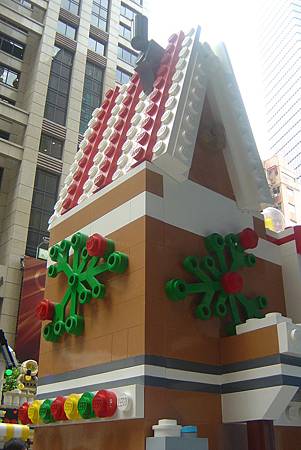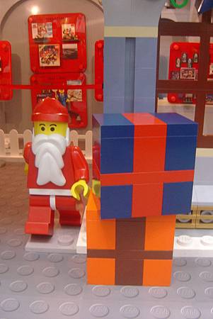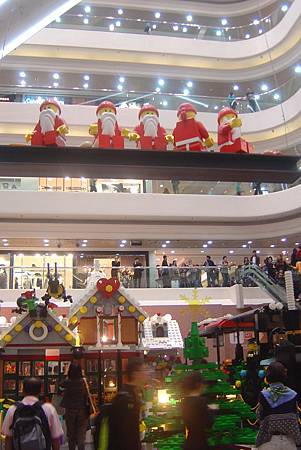 5個可愛的LEGO聖誕老人打個招呼,他們正在時代廣場二樓中庭的天花板小休片刻,快要從煙囪滑下送禮物呢!